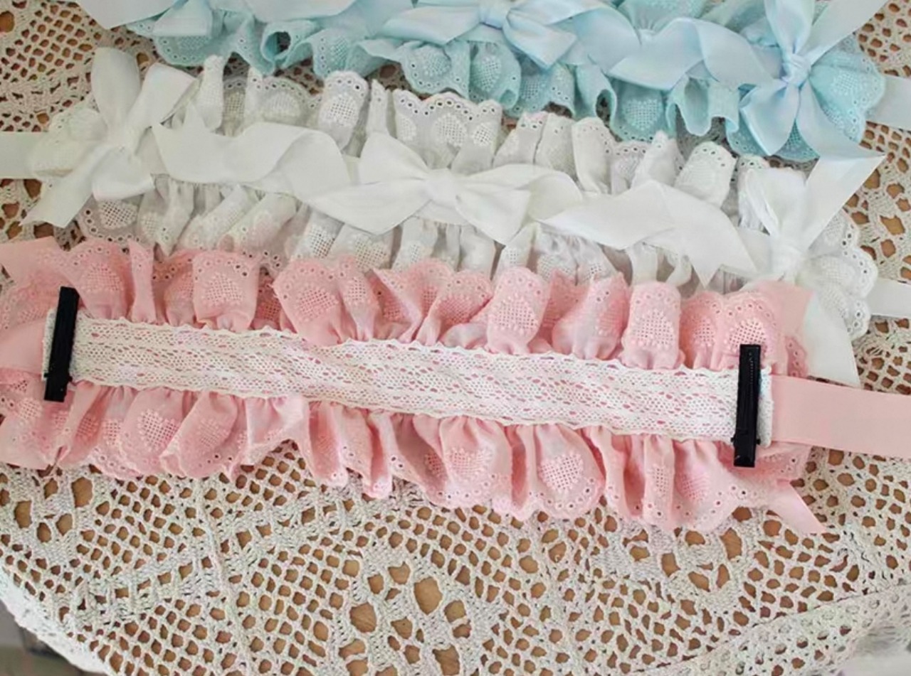 ♡ Bloom ribbon フリルレースリボンヘッドドレス light blue ♡
