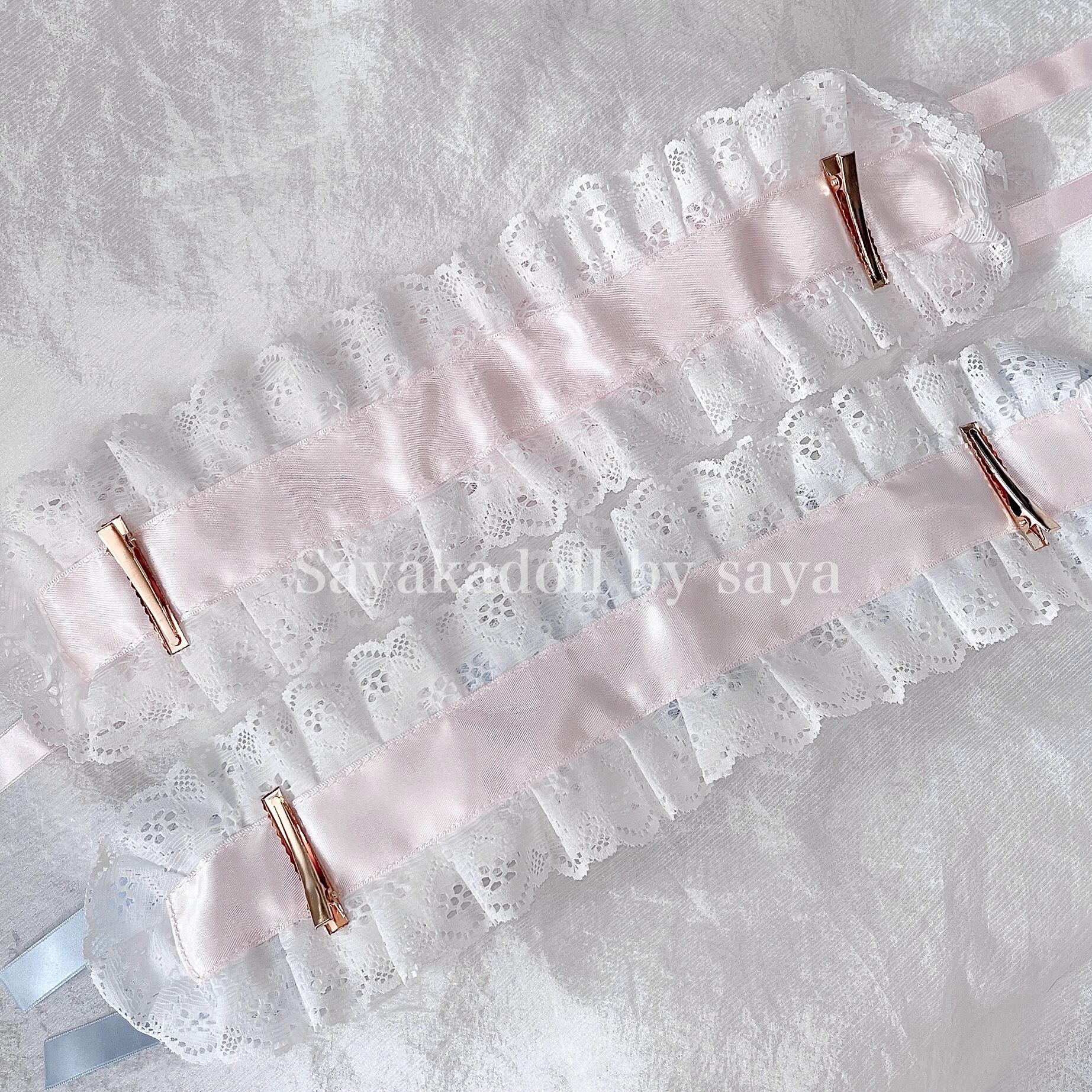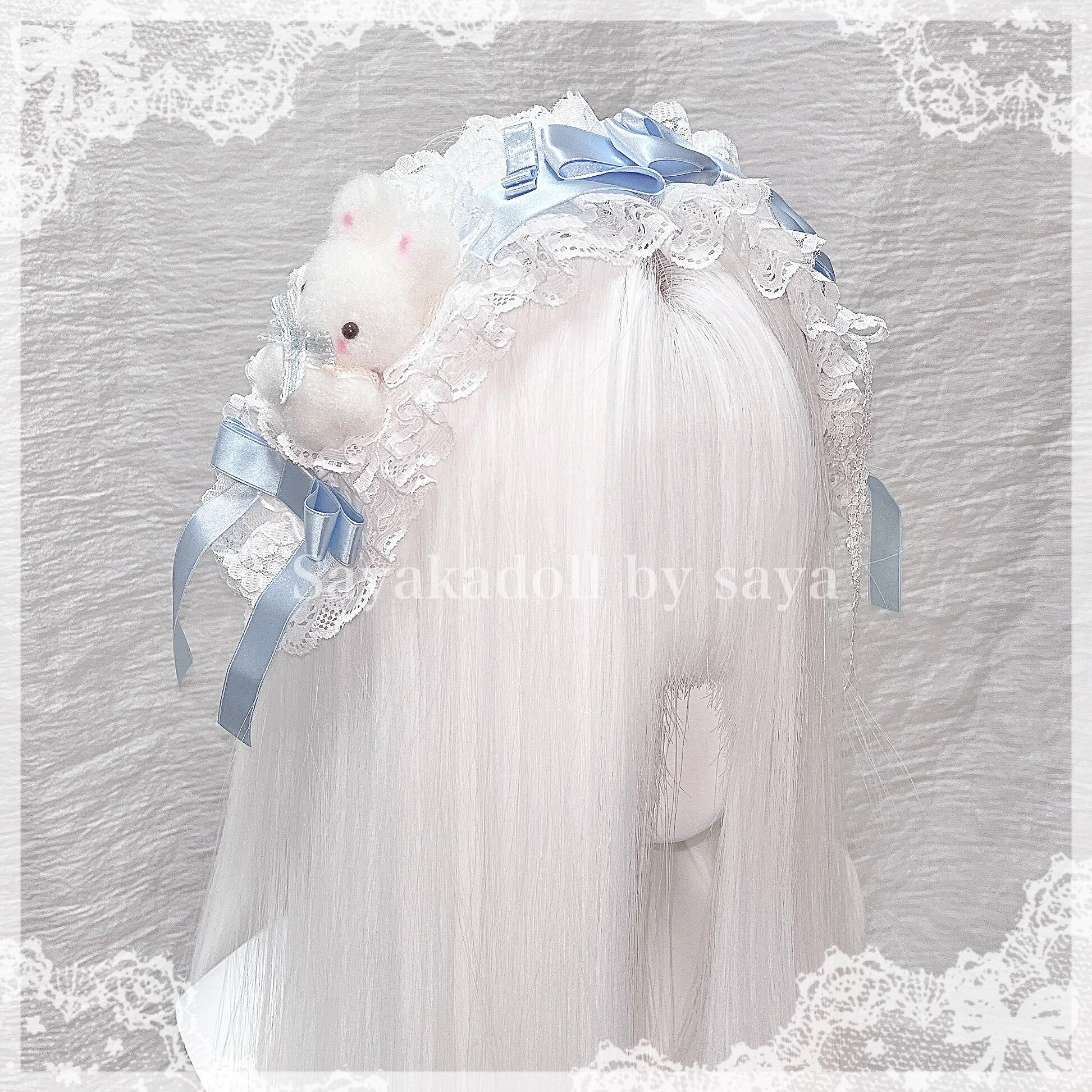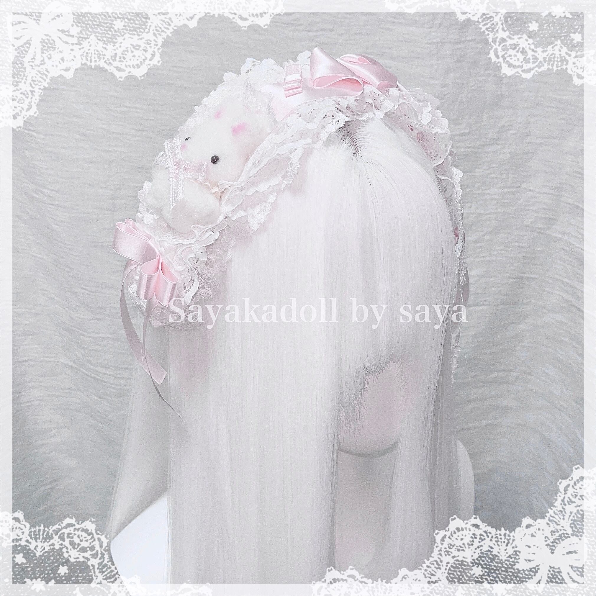 ♡ 赤ちゃんうさぎ付き*.+°フリルレースサテンリボンヘッドドレス baby pink ♡