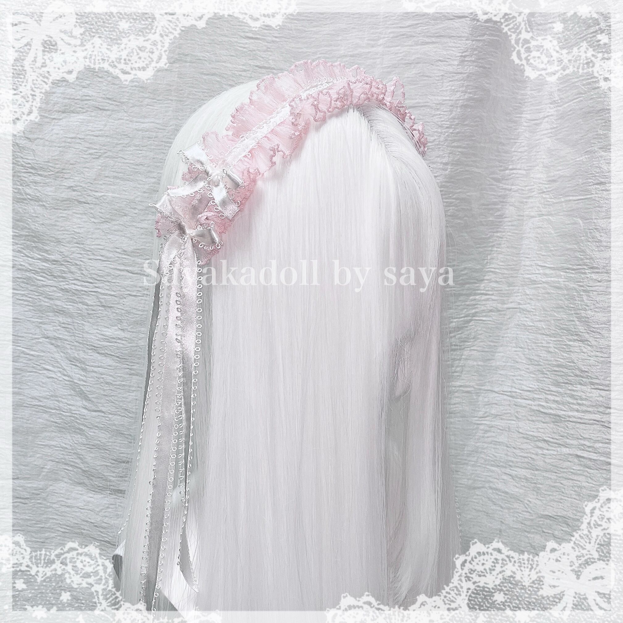 ♡ Princess double ribbon フリルレースリボンヘッドドレス white×black ♡