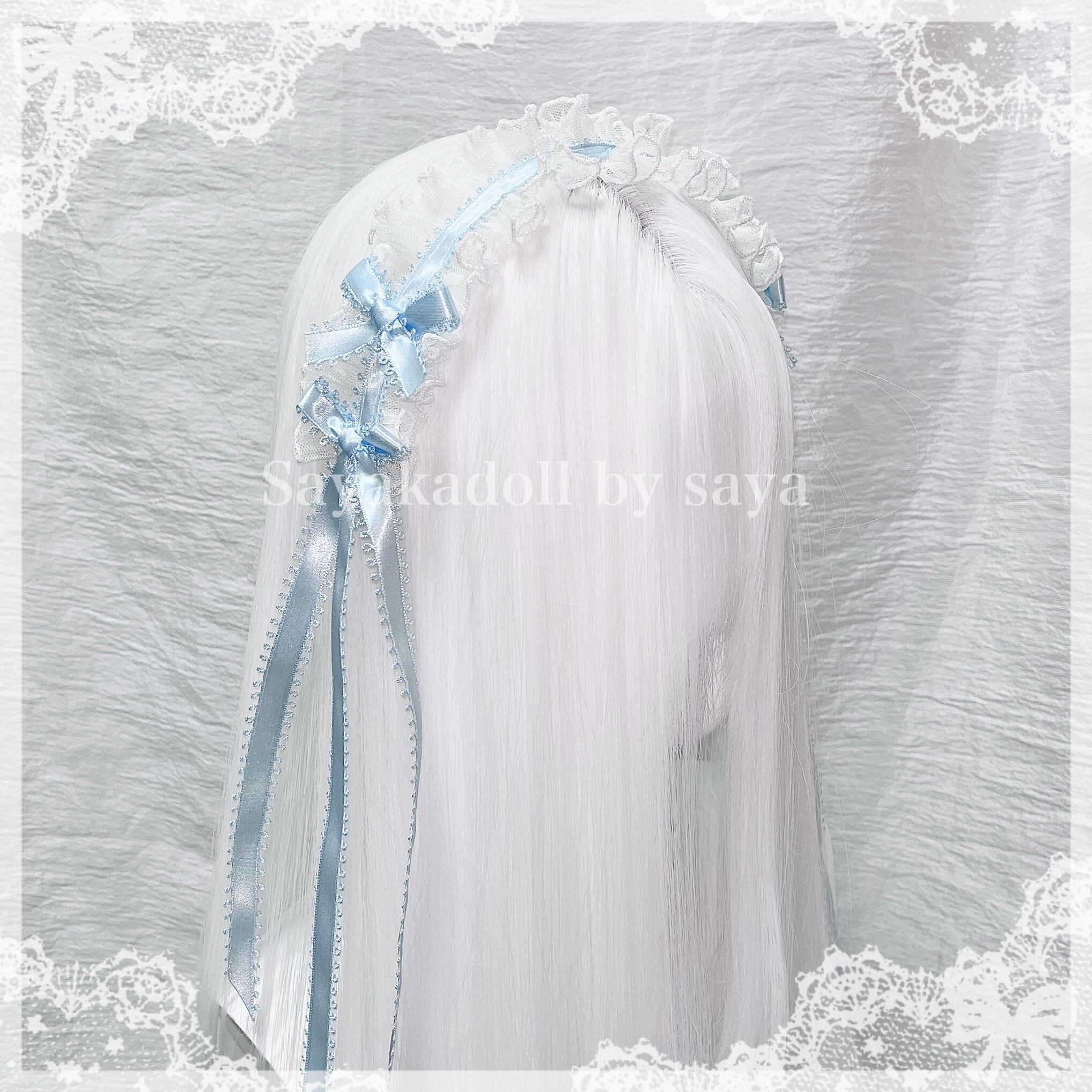 ♡ Princess double ribbon フリルレースリボンヘッドドレス white×light blue ♡
