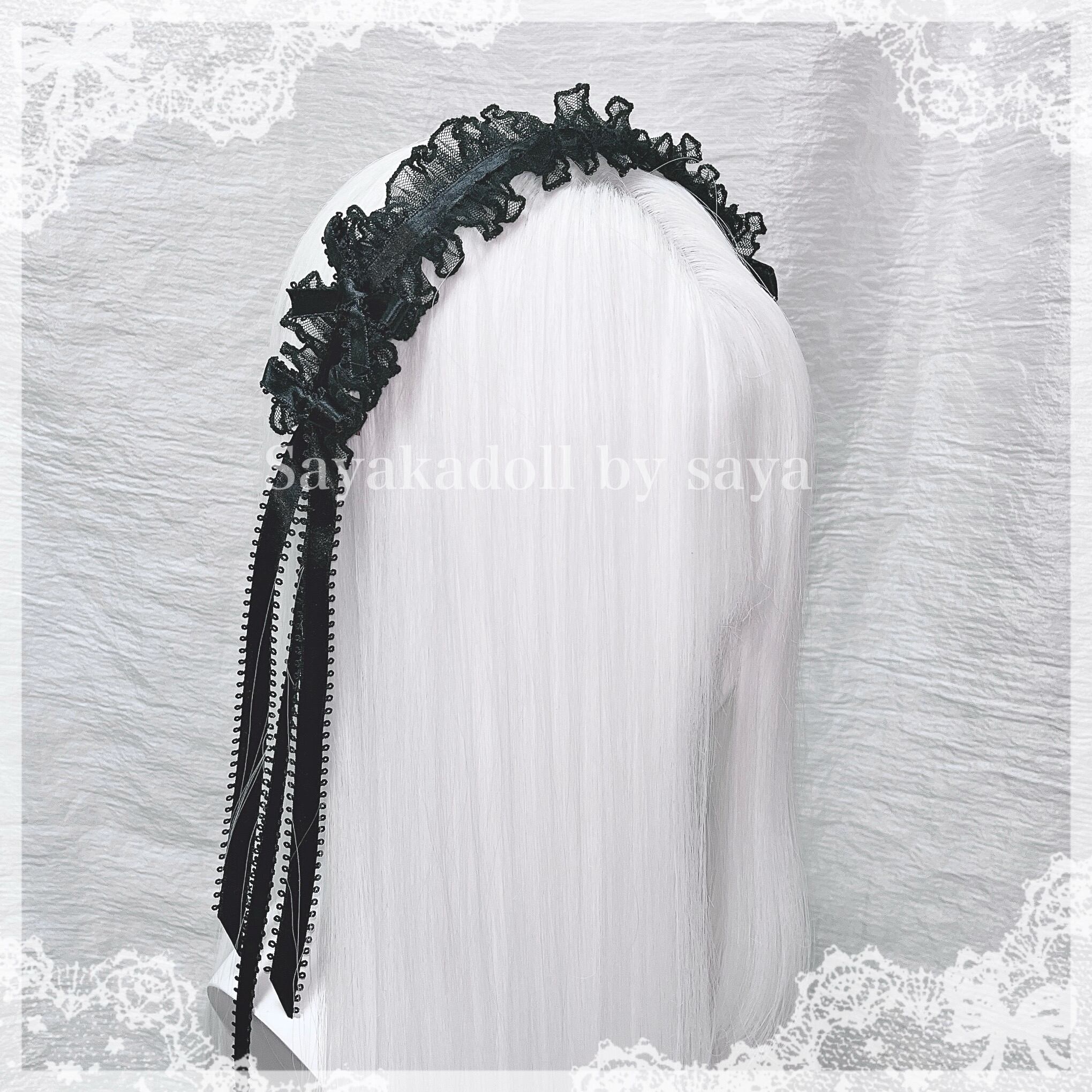 量産型・地雷系やゴシック・ロリータ・サブカル・Y2Kファッションにぴったりなフリルとリボンが可愛いヘッドドレスになります♡