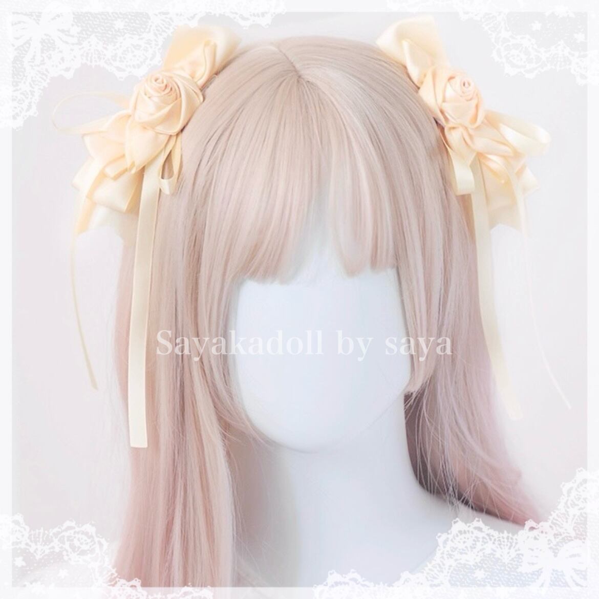 ♡【2個set】Rose サテンリボンヘアクリップ baby pink ♡