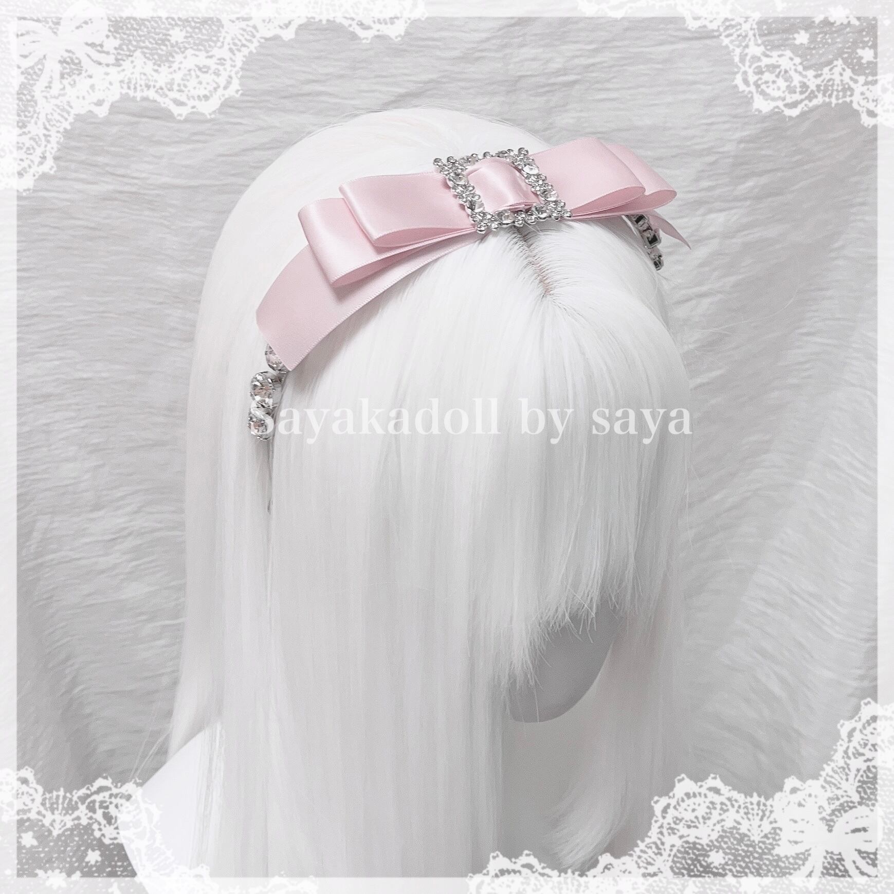 ♡ 量産型 地雷系 サテンリボン ビジューバックルカチューシャ cream ♡