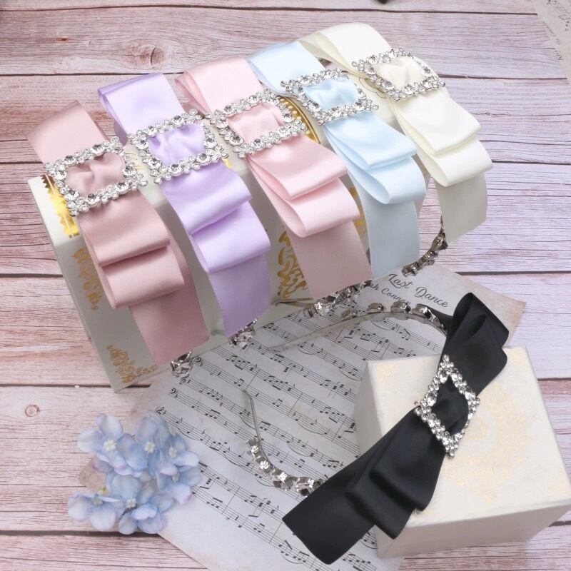 ♡ 量産型 地雷系 サテンリボン ビジューバックルカチューシャ smoky pink ♡